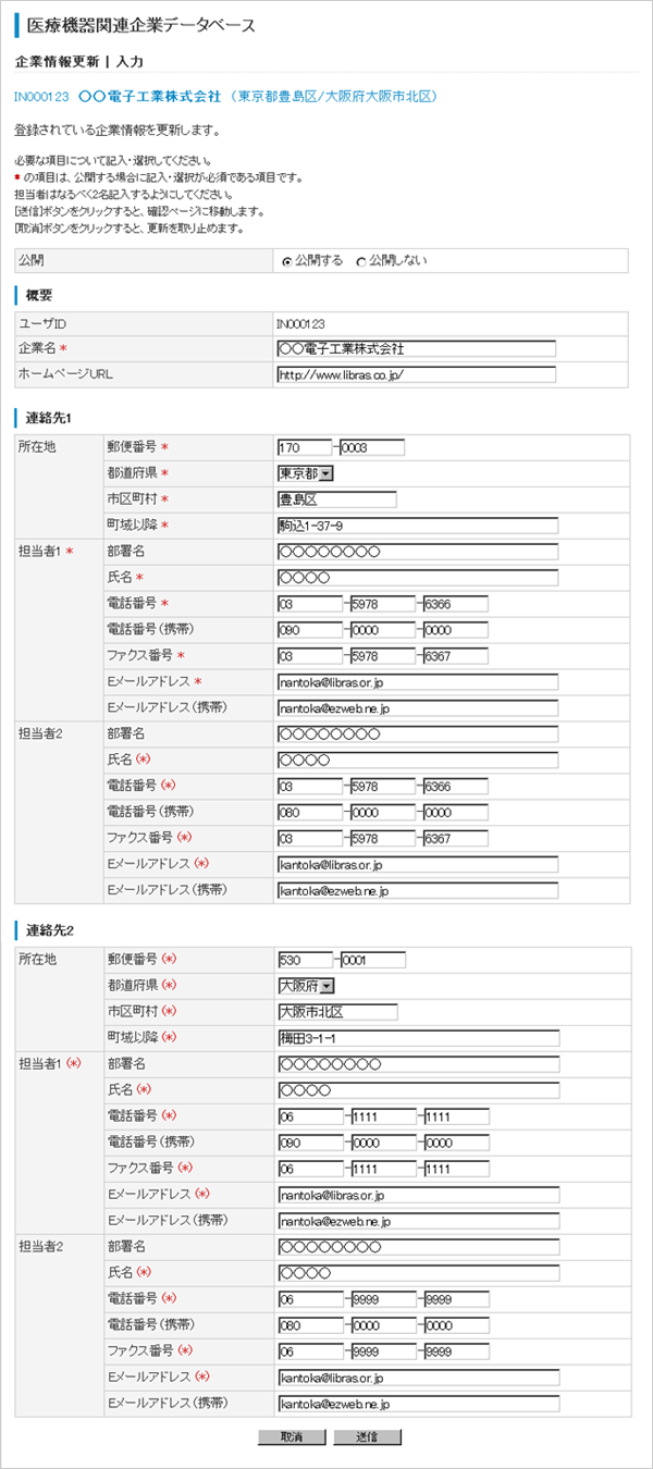 企業情報・医療機器情報に変動があった場合,すみやかに情報を更新してください.