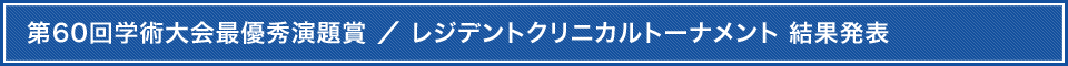 - 第60回学術大会最優秀演題賞 / レジデントクリニカルトーナメント 結果発表
